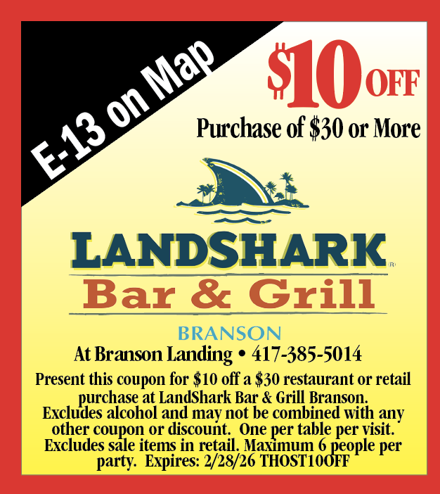 Show this coupon and save at LandShark Bar & Grill in Branson.